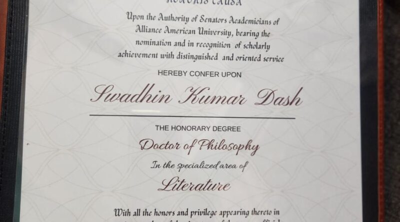 ସ୍ଵାଧୀନ କୁମାର ଦାଶଙ୍କୁ ଡକ୍ଟରେଟ ଉପାଧି