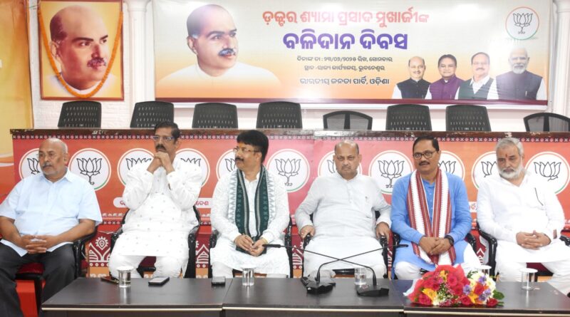 ଭୁବନେଶ୍ୱର, ତା.୨୩/୦୬: ଡ.ଶ୍ୟାମାପ୍ରସାଦ ମୁଖାର୍ଜୀ ହେଲେ ଆମ ସମସ୍ତଙ୍କ ପାଇଁ ପ୍ରେରଣାଦାୟୀ । ତାଙ୍କ ବଳିଦାନ ଦିବସ ଆମ ସମସ୍ତଙ୍କ ପାଇଁ ସ୍ମରଣୀୟ ଓ ପ୍ରତିବଦ୍ଧତାର ଦିନ